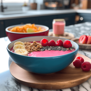 Heerlijk genieten van de zomerse smaak van frambozen met de verfrissende frambozen smoothie bowl! Deze heerlijke traktatie is perfect voor een warme dag en zorgt ervoor dat je je verfrist voelt. De frambozen smoothie bowl is gemaakt met verse frambozen en andere natuurlijke ingrediënten die zorgen voor een romige textuur en een verrukkelijke smaak.