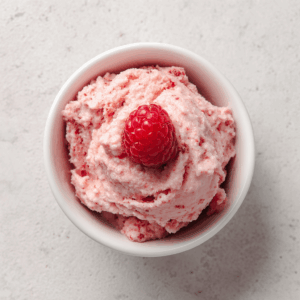 Dit vegan keto frambozen-kokosijs is een lichte, romige traktatie die perfect past bij warme dagen of als verantwoord dessert. De kokosroom en amandelmelk zorgen voor een fluweelzachte textuur, terwijl de frisse frambozen een natuurlijke zoetheid en een fruitige kick toevoegen. Door de gezonde vetten uit kokos en de natuurlijke zoetstoffen blijft het ijs laag in koolhydraten, maar rijk aan smaak en verzadiging. Met een topping van geroosterde kokosvlokken en cacaonibs krijgt het ijs een knapperige dimensie die elke lepel extra speciaal maakt. Een eenvoudige, voedzame en luxe verwennerij die je zonder schuldgevoel kunt genieten.