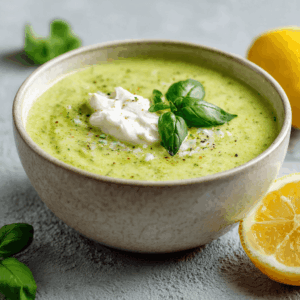 Deze romige Keto Courgettesoep met Citroen en Basilicum is als een warme omhelzing in een kom. Met de frisse smaak van citroen, de geurige basilicum en de zachte romigheid van kokosmelk voelt elke lepel licht en verkwikkend aan. Het is een snelle, gezonde keto-maaltijd die je in slechts 15 minuten op tafel zet, perfect voor drukke dagen of gezellige avonden. Deze soep combineert comfort en frisheid, voedt je lichaam met gezonde vetten en groenten, en laat je genieten van een smaakvol, voedzaam gerecht dat zowel verwarmt als verfrist.