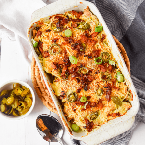 Veel mensen denken dat koolhydraatarm eten betekent dat je jezelf moet beperken, maar dit gerecht bewijst het tegendeel. Door de aardappels en pasta te vervangen door bloemkool krijg je een maaltijd die licht is voor je lichaam, maar toch een stevige bite heeft. De eiwitten uit de kip en de vetten uit het spek en de kaas zorgen ervoor dat je lang verzadigd blijft zonder dat je een zwaar gevoel ervaart. De zachte bloemkool neemt tijdens het garen de smaken van het geheel op, waardoor je een rijk gerecht krijgt dat volledig past binnen een bewuste levensstijl. Dit is comfortfood dat troost biedt, zonder dat je inlevert op je doelen of gezondheid.