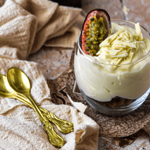 Luchtige witte chocolademousse zonder ei en suiker